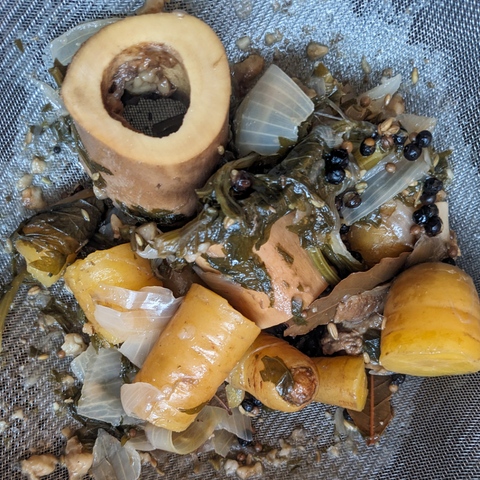 With onions, carrots, herbs and spices this rich and flavourful bone stock is the perfect base for any soup or stew!